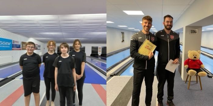 Für Roßdorf starteten Paddy und Sören ins Spiel. Konzentriert und mit sehr guten Ergebnissen gewann Paddy alle vier Bahnen und holte den Mannschaftspunkt für uns. Sören enttäuschte keineswegs, hatte aber gegen den mit 588 Kegeln besten Walldörfer Spieler, keine Chance. Mit 1:1 Mannschaftspunkten und 21 Kegeln Vorsprung übernahmen Franky und Renè in die Mittelpaarung. Die Zuschauer sahen jetzt fast eine Kopie der Anfangspaarung. Gegen einen schwächeren Gegenspieler konnte Franky alle vier Bahnen gewinnen und Renè war, trotz hervorragendem Spiel, seinem mit 584 Kegeln glänzendem Gegenspieler knapp unterlegen. 2:2 Mannschaftspunkte, aber nun 69 Kegel Vorsprung übernahmen Tim und Timo in die Schlusspaarung. Walldorf konnte jetzt nur noch auf den ersten beiden Bahnen mithalten und Tim und Timo setzten sich schließlich mit jeweils 3 gewonnen Bahnen noch deutlich durch. Timo glänzte dabei (obwohl sein Gegenspieler mit 570 Kegeln ebenfalls ein ganz starkes Ergebnis erzielte) mit herausragenden 595 Kegeln (220 Räumer!). Herzlichen Glückwunsch. Das Spiel endete deutlich mit 3301:3148 Kegeln für Roßdorf, das die wesentlich kompaktere Mannschaftsleistung ablieferte.